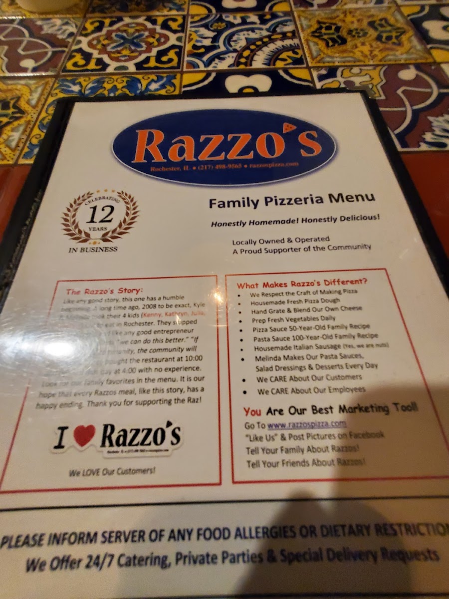 Razzos Family Pizzeria Menu